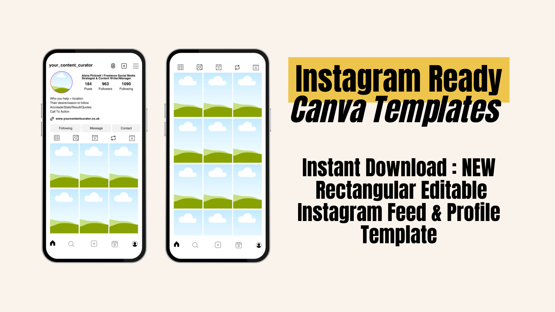 Instant Download : New Rectangle Editable Instagram Feed & Profile Template